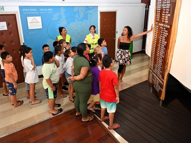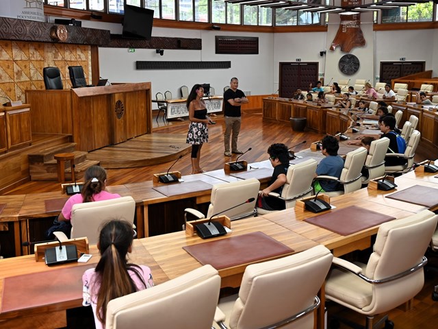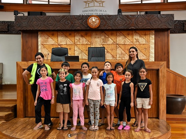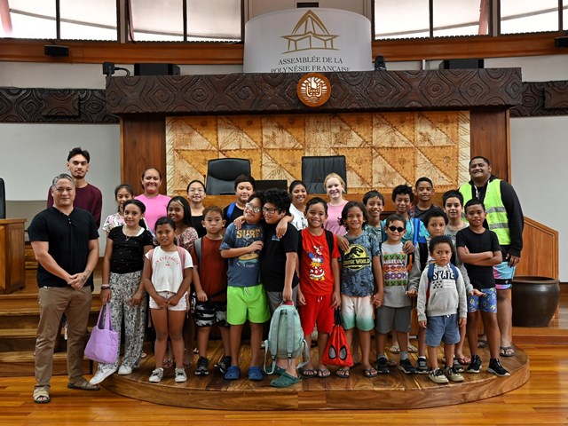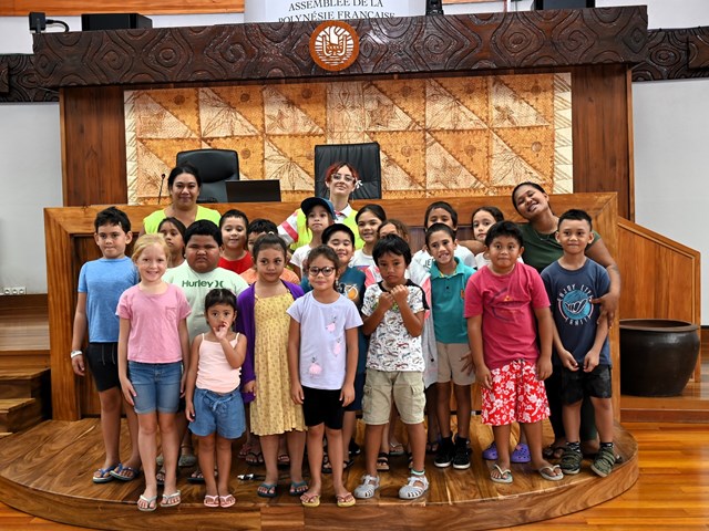 Ce mardi 15 juillet 2025, quatre-vingt-dix enfants âgés de 3 à 11 ans, accompagnés de dix-huit encadrants, ont visité l’Assemblée de la Polynésie française.