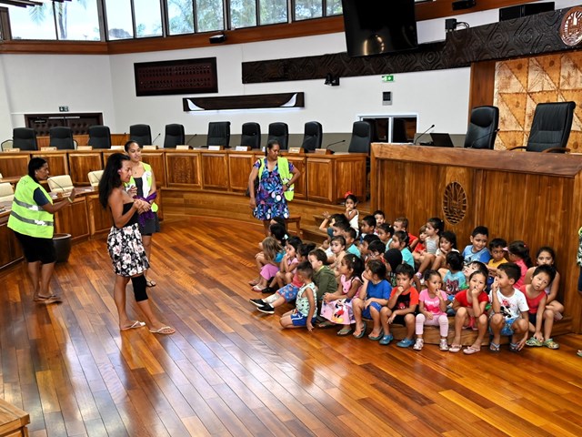 Les enfants des sections maternelles ont ensuite rejoint leurs aînés dans l’hémicycle Vetea BAMBRIDGE, coeur des débats parlementaires, où siègent les représentants de l’Assemblée.