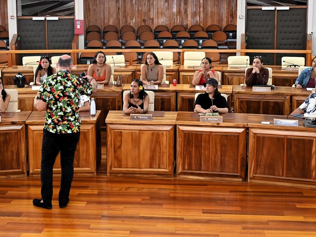 Ils se sont ensuite rendus dans l’hémicycle Vetea BAMBRIDGE, où siègent nos représentants politiques et où se déroulent les débats parlementaires.