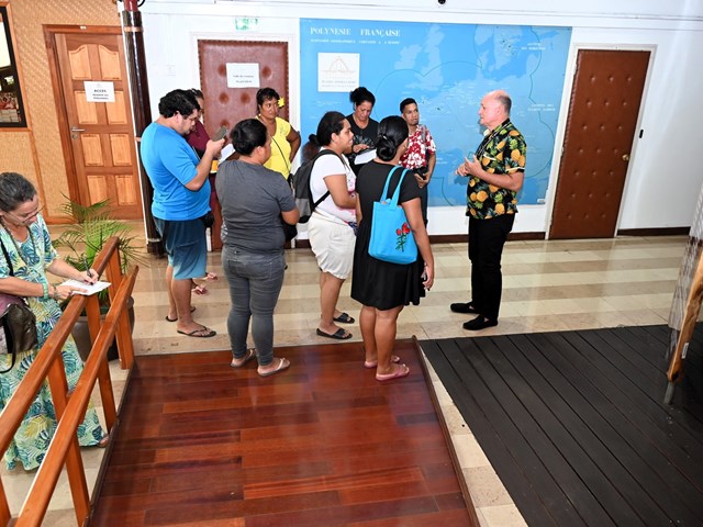 Ce lundi 12 mai 2025, l’assemblée de la Polynésie française a accueilli huit stagiaires de la formation EPIP TH, réservée aux personnes reconnues travailleurs handicapés, dispensée par Grand Angle Formation, accompagnés de leur formatrice, Mme Aurélie POUZOULET, dans le cadre d’une visite guidée des locaux de l’institution.