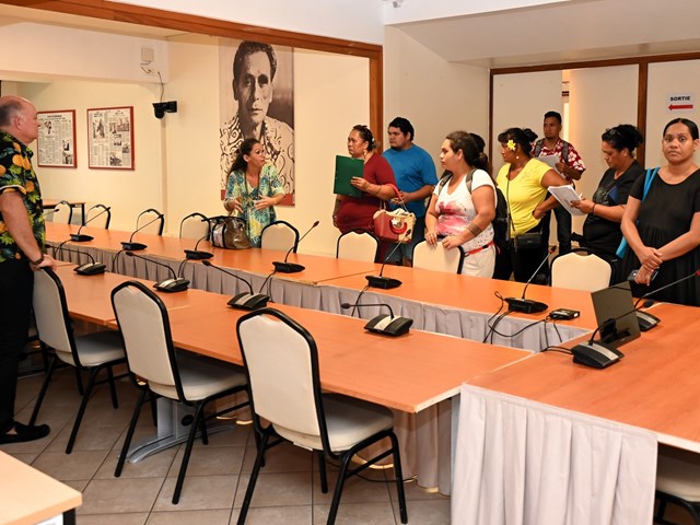 La découverte s’est poursuivie dans la salle des commissions John French Teariki, espace réservé à l’étude approfondie des projets de texte avant leur passage en séance plénière. Les jeunes visiteurs y ont saisi l’importance du travail en commission dans l’élaboration des lois.