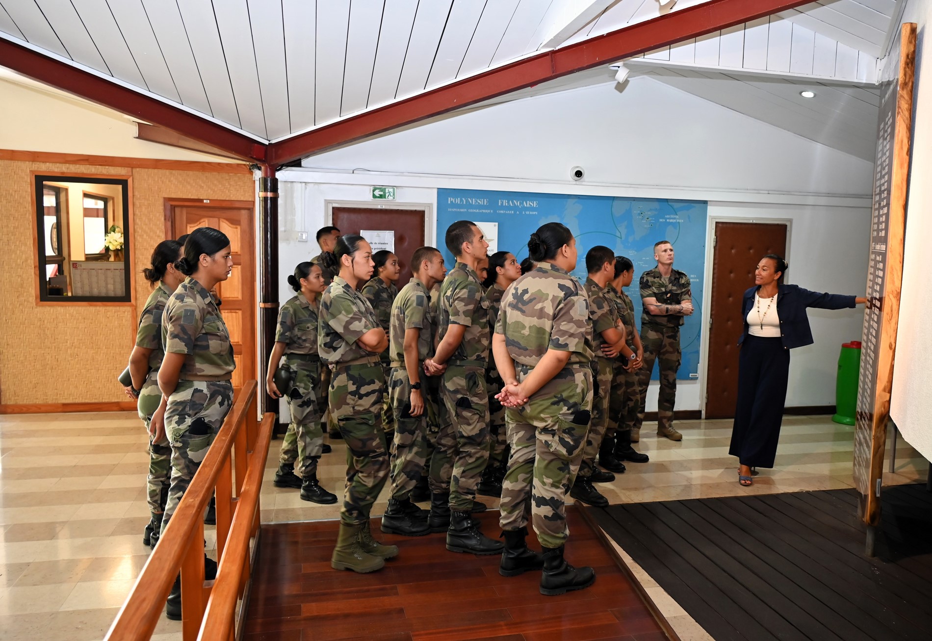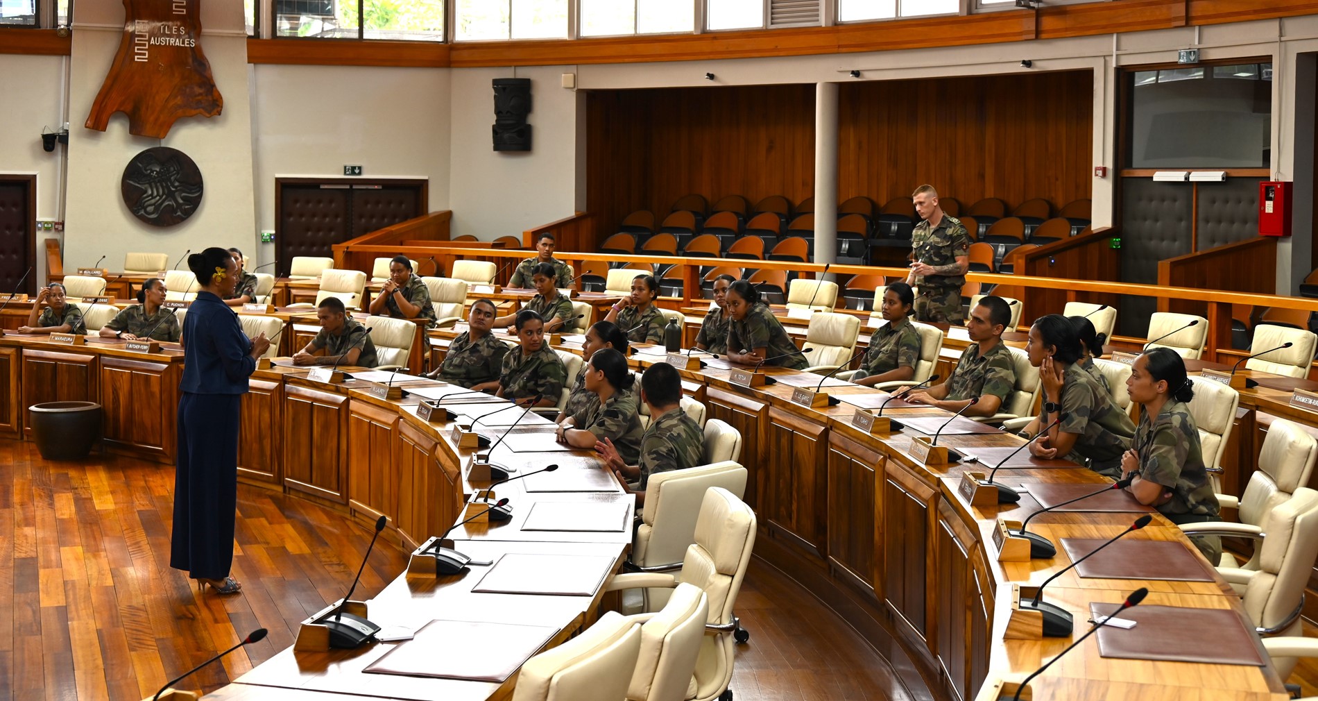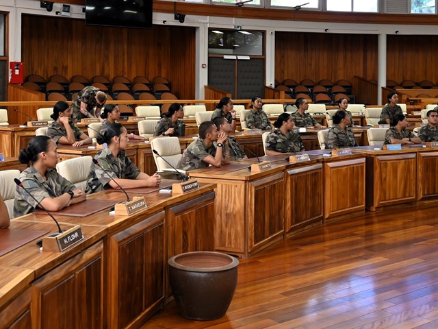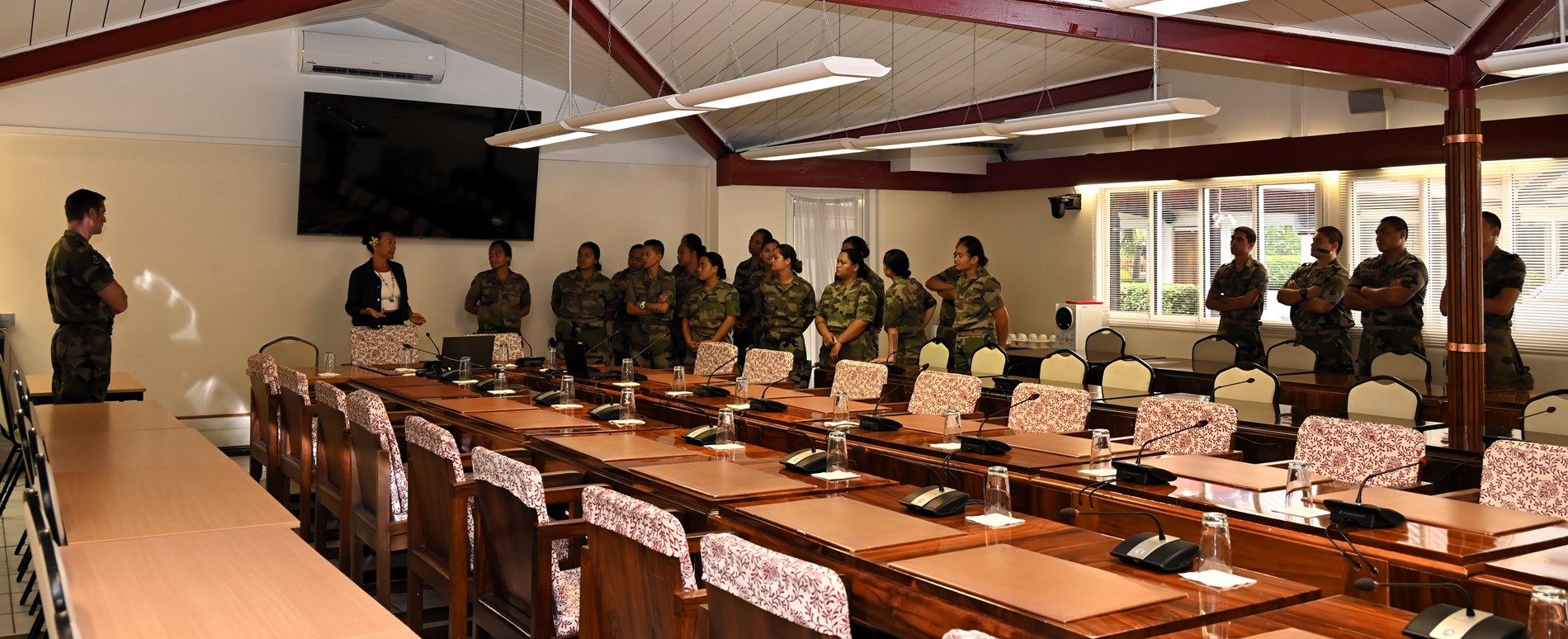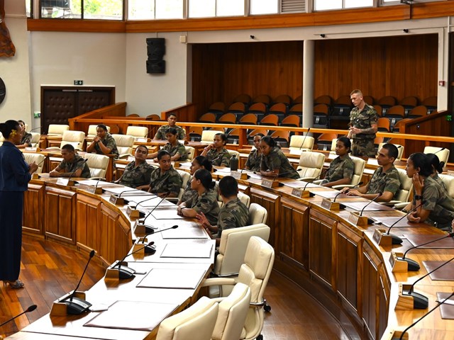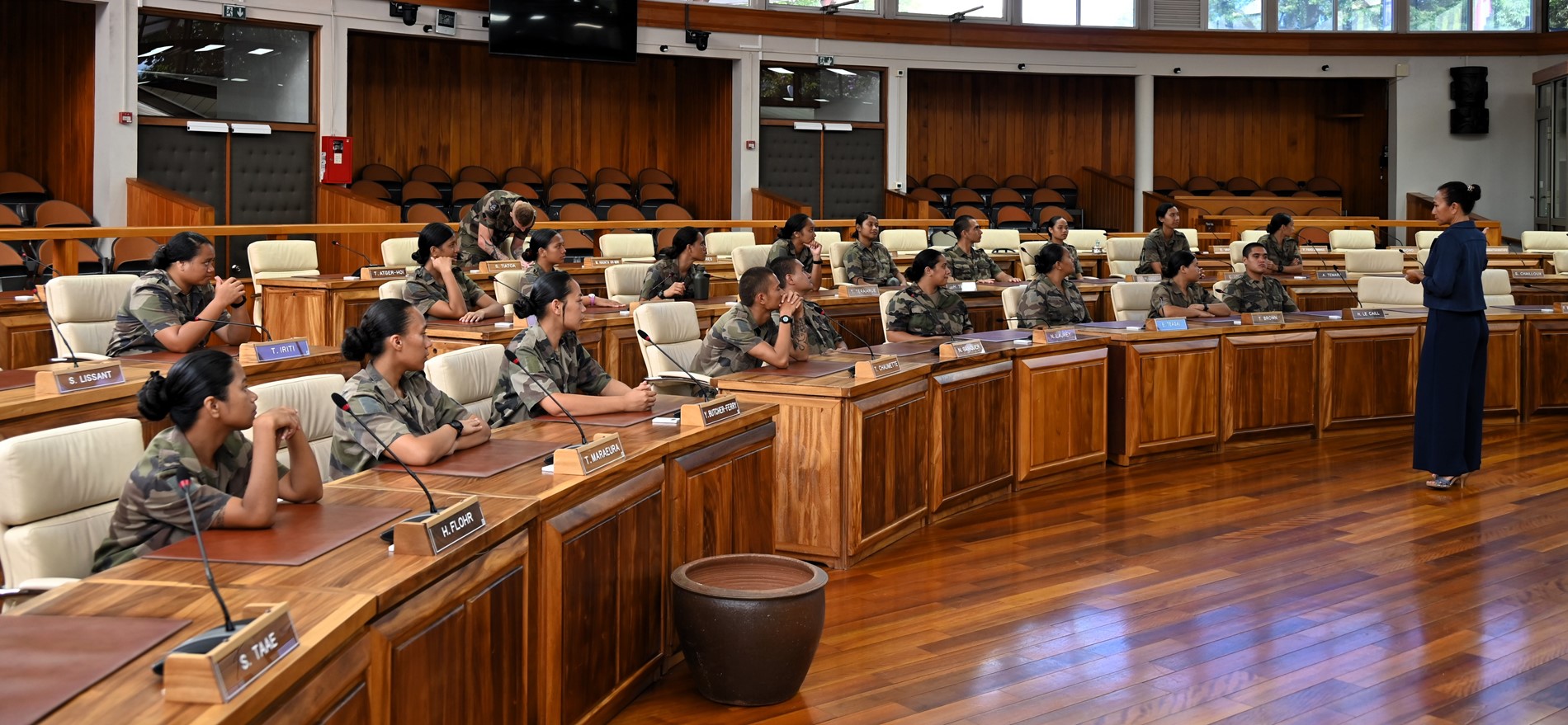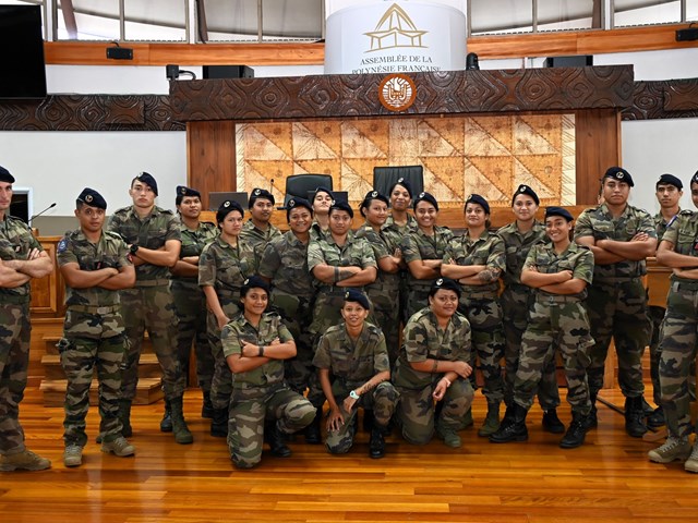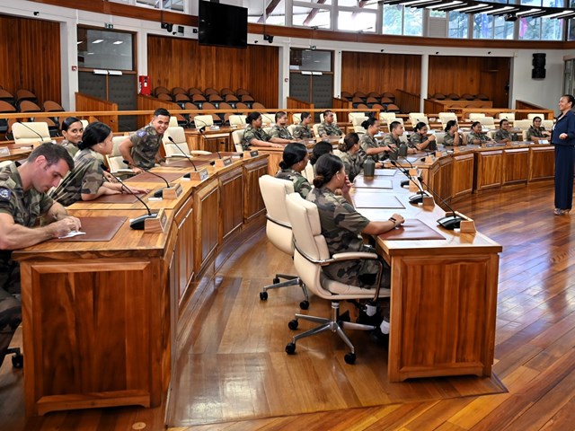 Ce mardi 18 novembre 2025, une quarantaine de volontaires stagiaires du Régiment du Service Militaire Adapté de Polynésie française (RSMA-PF) en Formation Militaire Initiale (FMI) accompagnés de leurs sergents GOMILA et KNIEBILLE, ont été accueillis à l’Assemblée de la Polynésie française.