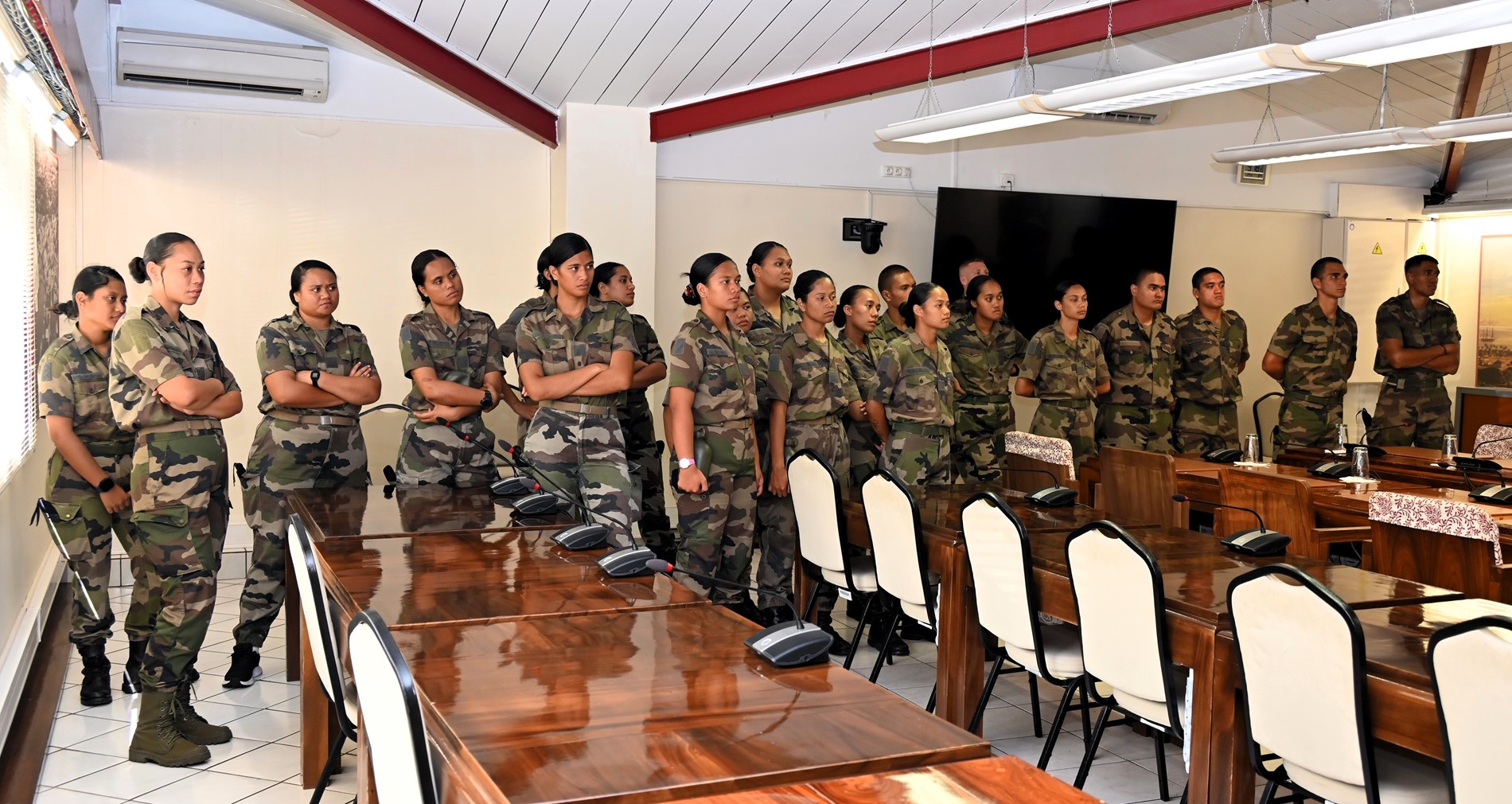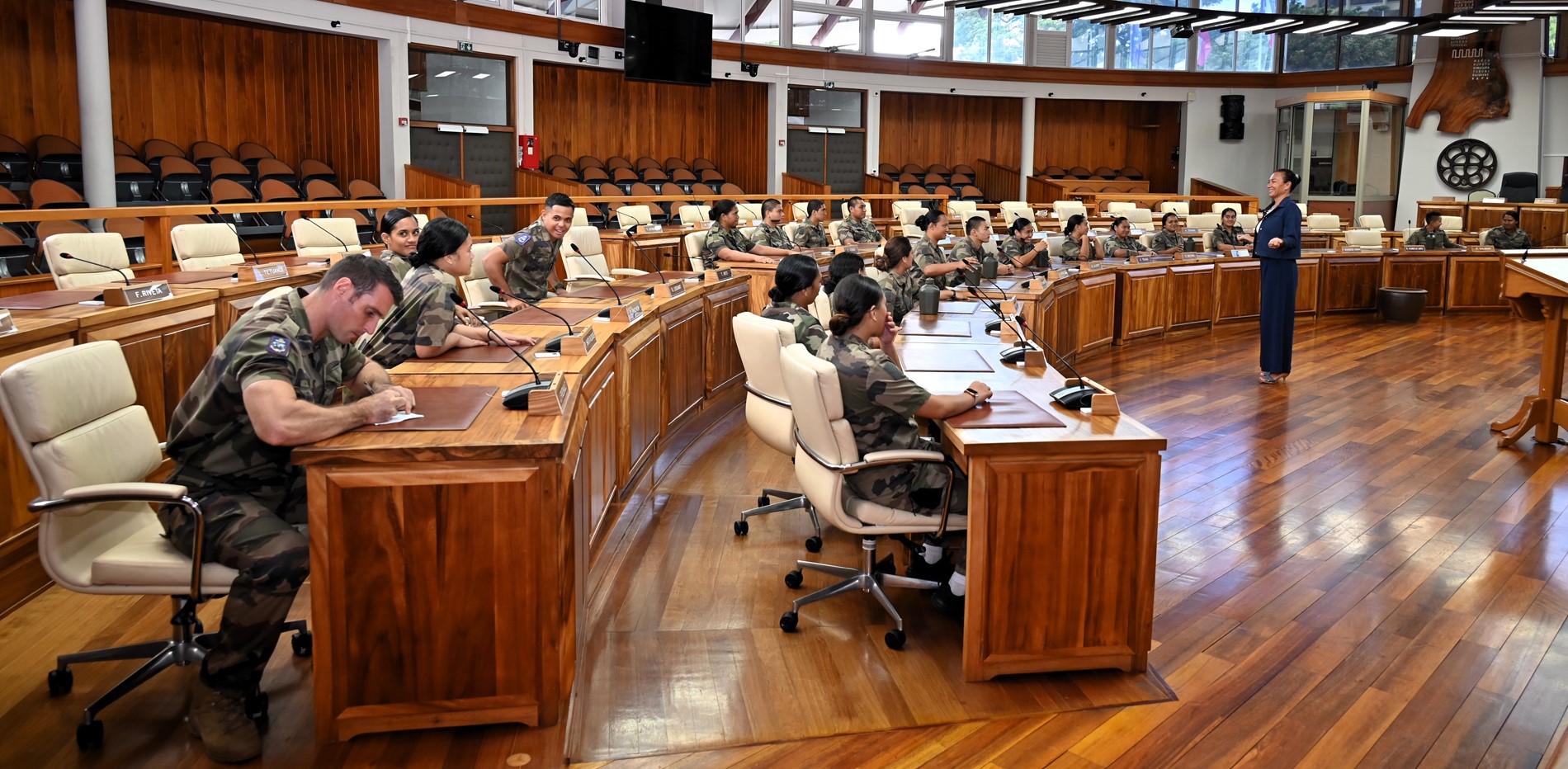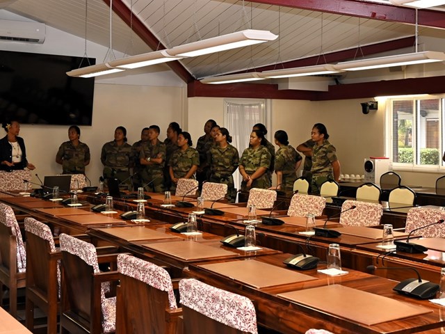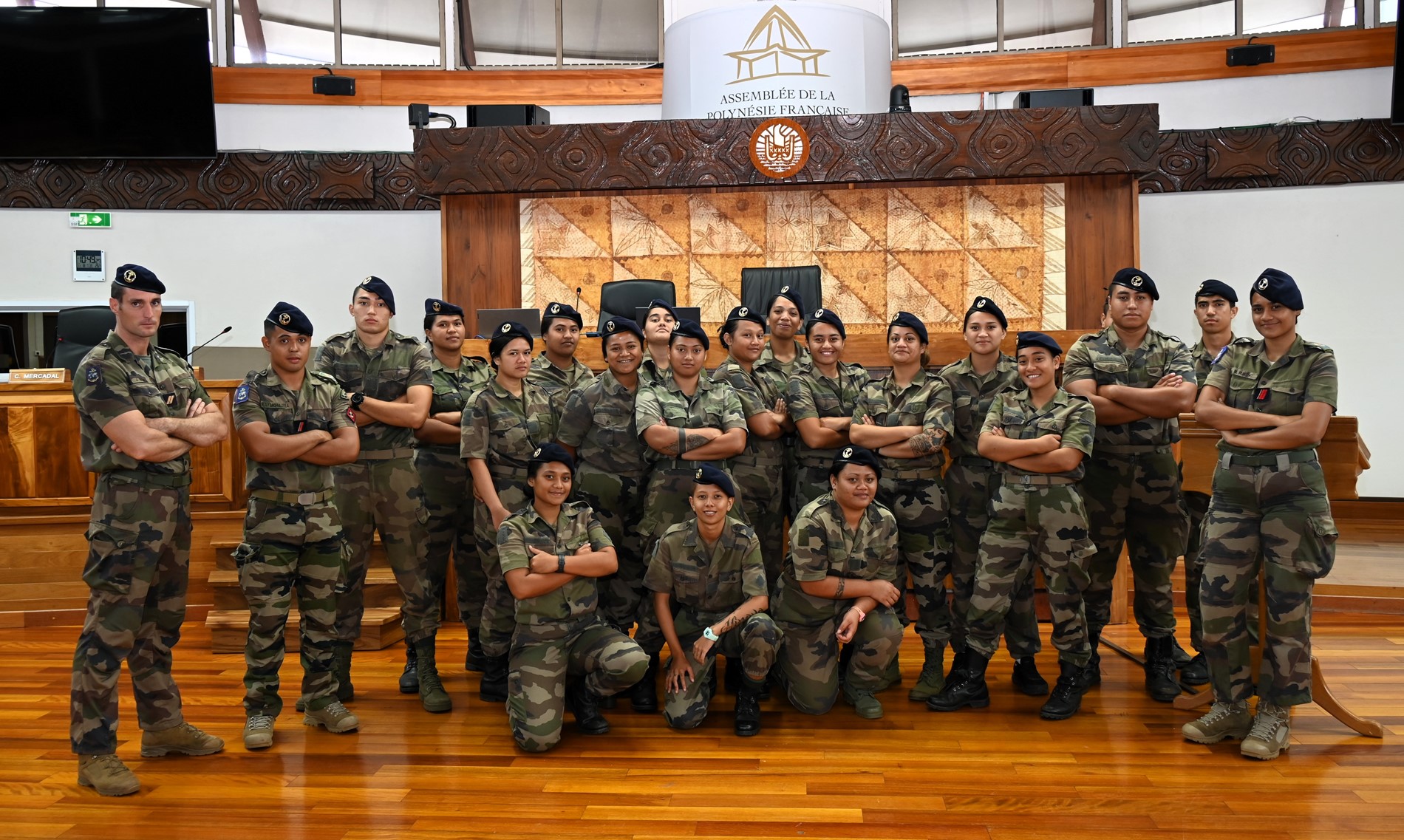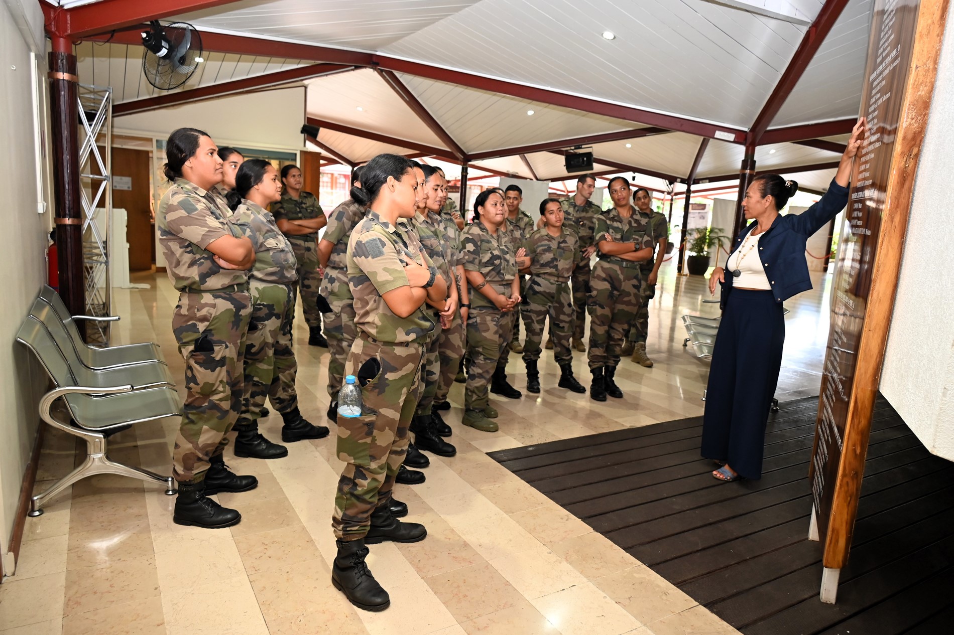 Ce mardi 18 novembre 2025, une quarantaine de volontaires stagiaires du Régiment du Service Militaire Adapté de Polynésie française (RSMA-PF) en Formation Militaire Initiale (FMI) accompagnés de leurs sergents GOMILA et KNIEBILLE, ont été accueillis à l’Assemblée de la Polynésie française.