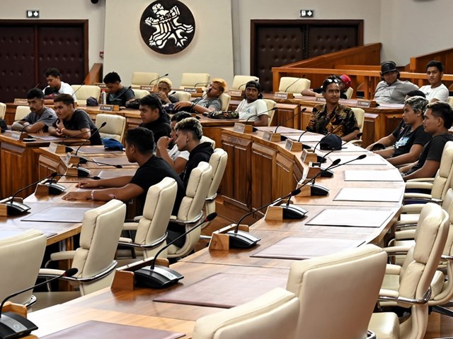 Accueillis par M. Tevaipaea HOIORE, représentant et membre de la commission de l'éducation, de l'enseignement supérieur, de la jeunesse et des sports, les élèves ont pu découvrir le fonctionnement de la troisième institution de Polynésie française.