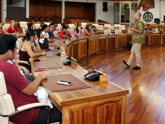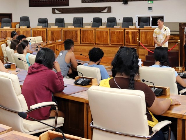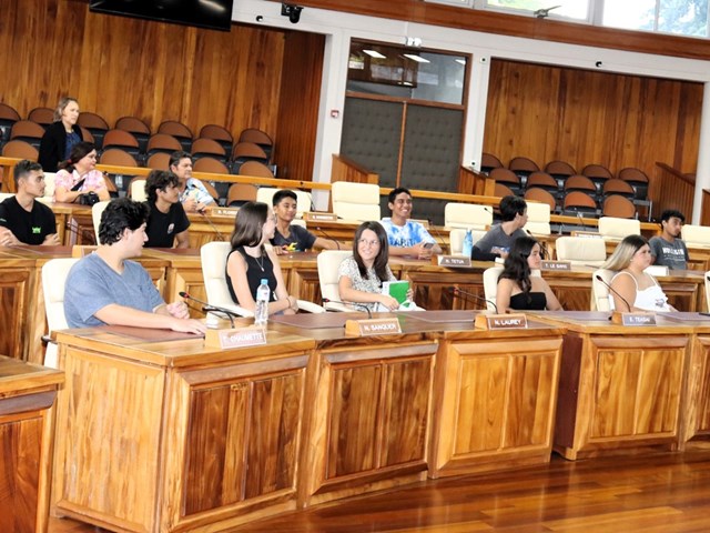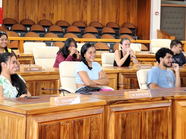 Dans l’hémicycle, les élèves ont également pu bénéficier d’une présentation des missions de l’institution et du rôle de leurs élus effectuée par les représentants Mme Maurea MAAMAATUAIAHUTAPU et MM. Heinui LE CAILL, Cliff LOUSSAN et Tevaipaea HOIORE.