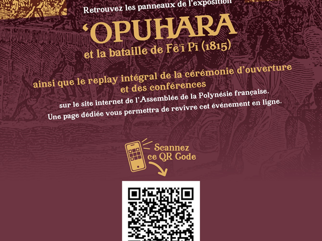 Sous l’impulsion de M. Antony GEROS, président de l’Assemblée de la Polynésie française, l’institution poursuit son cycle d’expositions consacrées à l’histoire du fenua, en inaugurant, le mercredi 12 novembre 2025, date commémorative de la bataille de Fē‘ī Pī (1815), l’exposition-conférence « ‘Opuhara et la bataille de Fē‘ī Pī ».