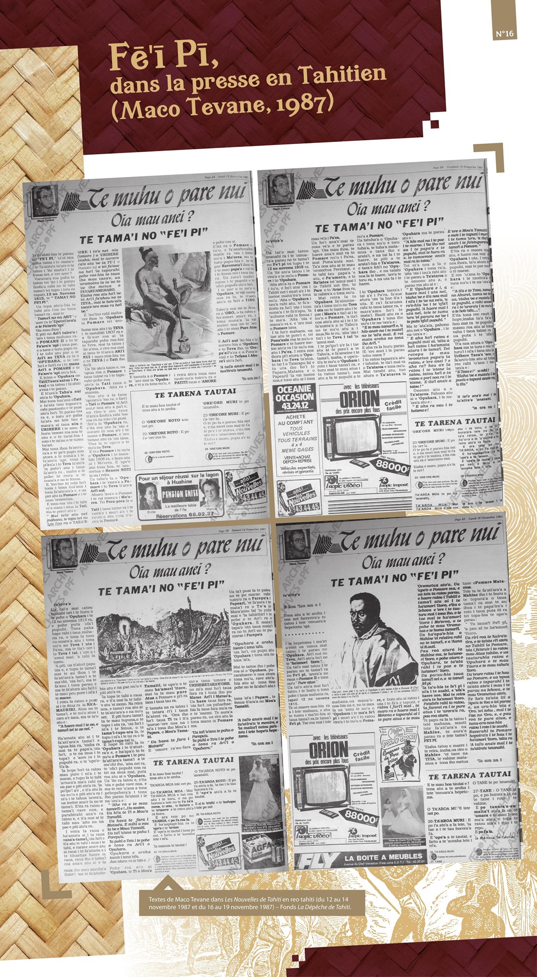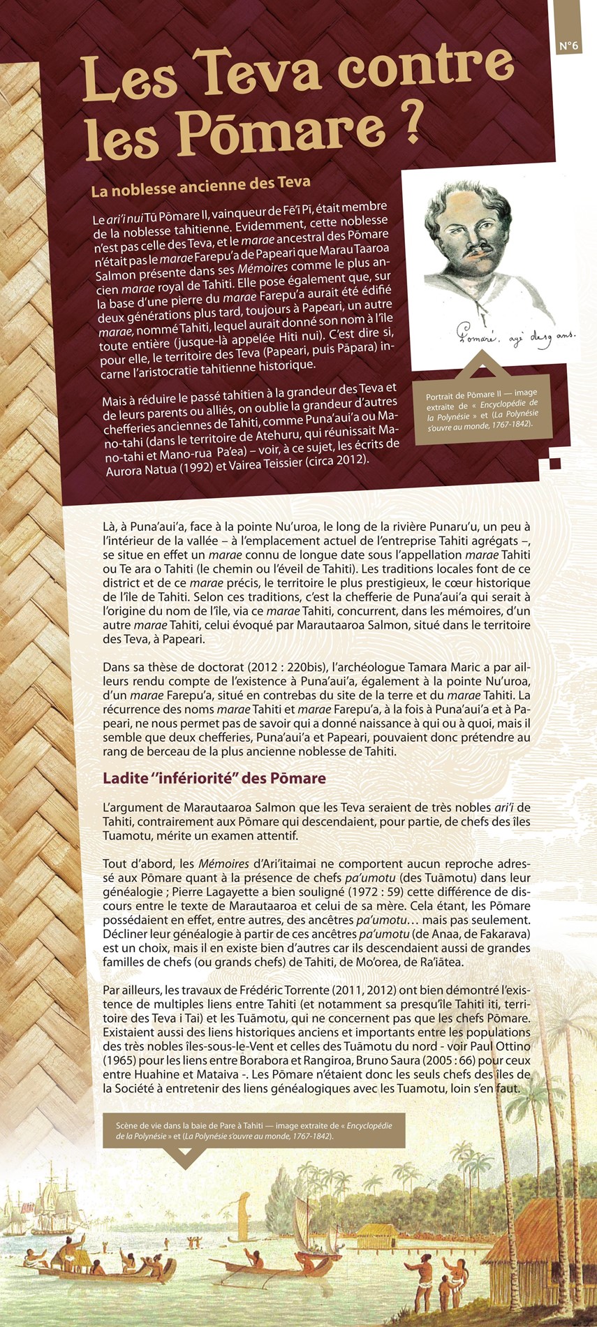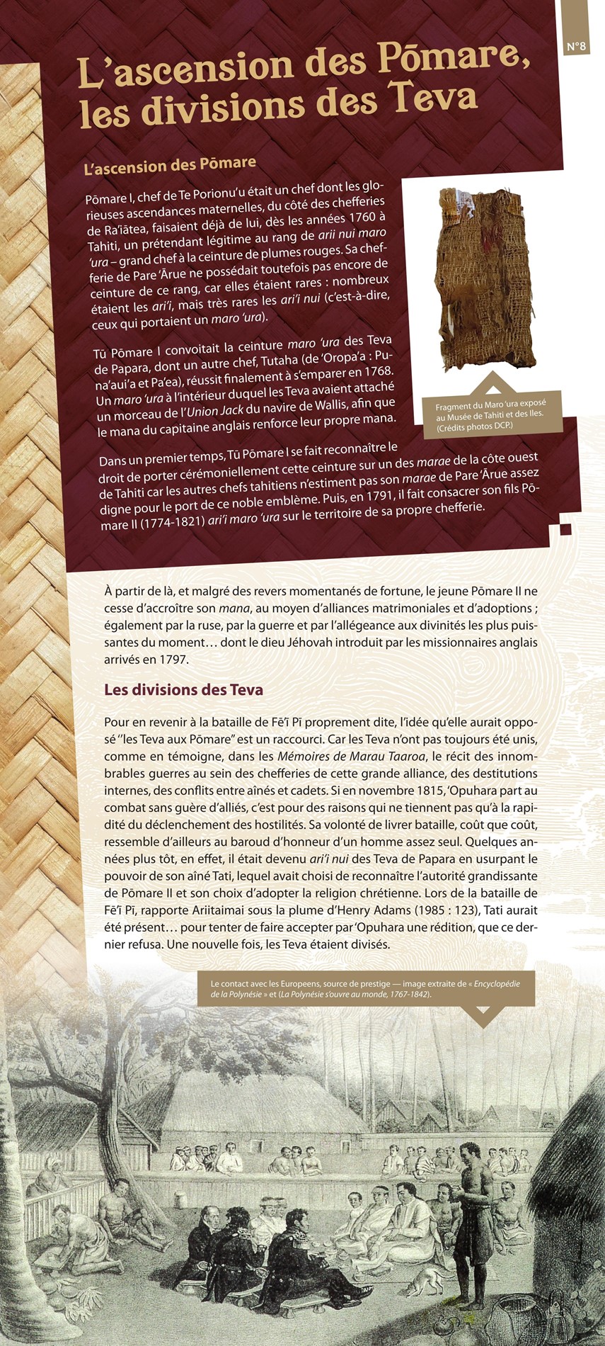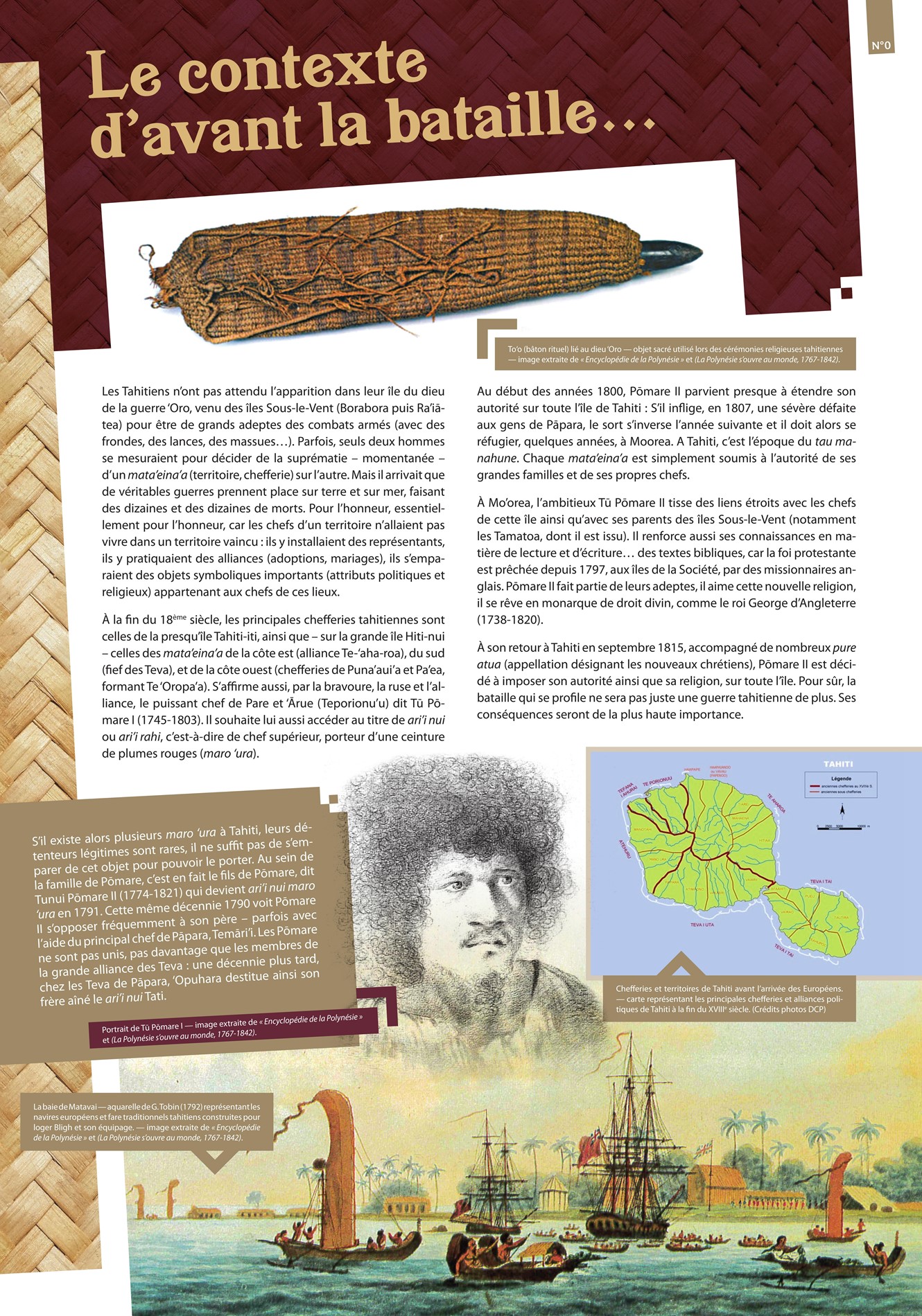 Fei-Pi, Opuhara, Pomare autant de noms qui évoquent une période particulière, celle d’une transition politique mais aussi religieuse. 1815 ? Une période qui marquerait la fin de nos traditions, le début d’un nouvel ordre. Autant de questions auxquelles nous tâcherons de répondre lors de cette intervention. Entre témoignages écrits et études de terrain, les sources ne manquent pas pour évoquer la bataille dite de Fei-Pi. S’agit-il réellement d’une bataille, de deux clans qui s’opposent celui des Teva et des Te Porionuu. Opuhara, le ti sacré de Mou’a Tamaiti, héros, gardien des traditions, Pomare, converti à la religion qui croit en Iehova, deux personnalités que tout semble opposé et pourtant…. Le XIXème siècle est un siècle de profondes mutations, celles de contact avec les étrangers, ces personnes qui viennent d’un navire à balancier blanc.